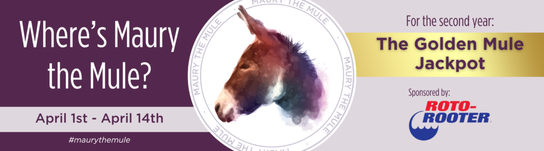 Find Maury the Mule hidden in businesses across Maury County for a chance to win $1,000 in the Golden Mule Jackpot, sponsored by Roto-Rooter, and other great prizes!